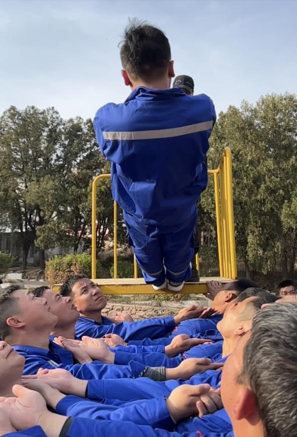 最后一個(gè)拓展項(xiàng)目“畢業(yè)墻”,墻高4.2米,要求在沒有任何工具的情況下翻過這面墻,剛開始每個(gè)人心里都微微一驚。最后,在教官的帶領(lǐng)下,員工們克服恐懼心理,團(tuán)結(jié)協(xié)作,眾志成城,全部翻過了畢業(yè)墻,他們揮舞著旗幟,高聲吶喊“我們勝利了”!兗州中材公司就是這樣一個(gè)充滿激情的團(tuán)隊(duì),員工們翻過了拓展訓(xùn)練營的畢業(yè)墻,相信在工作中也一定能夠翻過他們心中的“畢業(yè)墻”。