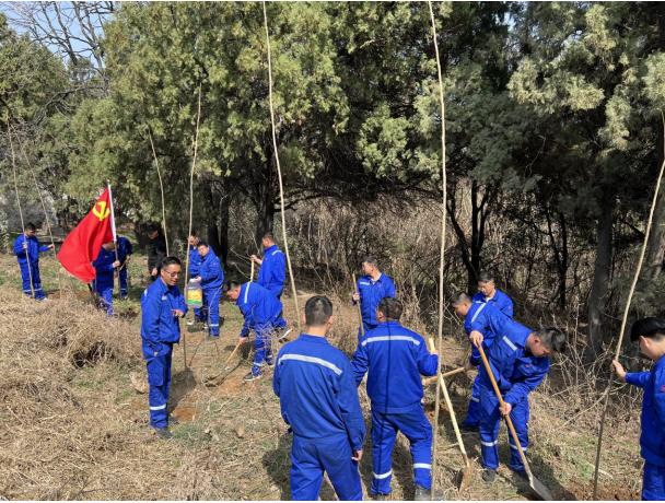 臨近3.12植樹節(jié),為響應(yīng)中材礦山“黨旗紅,礦山綠”的主題植樹活動,本次團(tuán)建活動特意加入了植樹環(huán)節(jié)。大家有的鏟土挖坑、有的培土植樹,有的澆水灌溉,個(gè)個(gè)爭先恐后,干得熱火朝天。