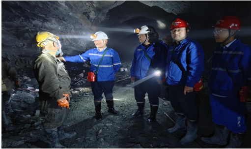 張漢武總經理一行檢查了和龍分公司Ⅶ號礦組632中段和656中段,并在現場親切詢問井下員工的工作情況,詳細了解礦組頂板、通風等安全管理措施,強調一定要做好頂板檢撬及支護工作,保證井下通風良好。隨后聽取了和龍分公司經理石恩國黨建工作、安全生產、經濟運行情況匯報。