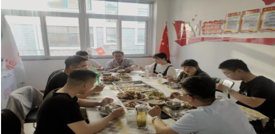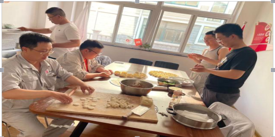 伴隨著歡歌笑語(yǔ)忙碌了一天后,大家坐在一起吃粽子、吃餃子,喝啤酒。好酒沈醉酬佳節(jié),十分酒,一分歌。其樂(lè)融融,像家人一樣,多么和諧幸福的大家庭呀。